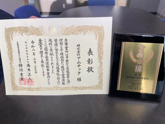 富山県警察本部長、自動車安全運転センター理事長より、 「優秀安全運転事業所表彰 … 続きを読む